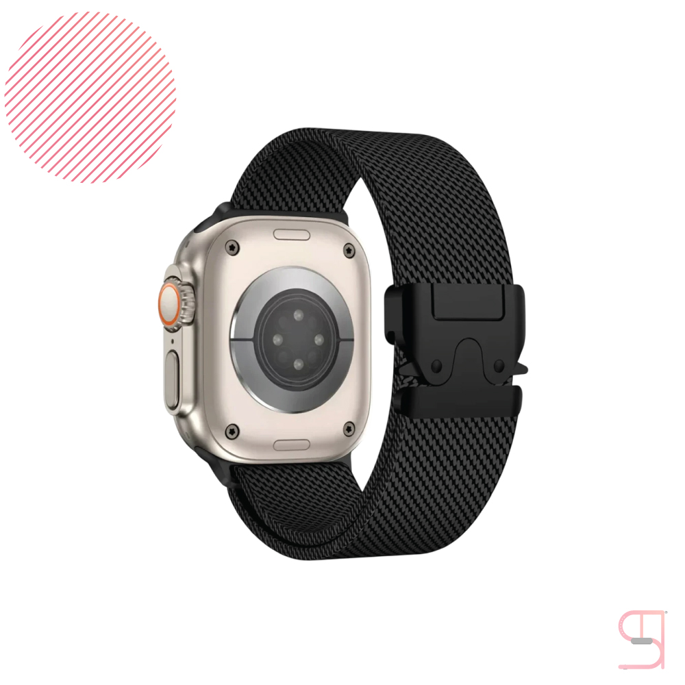 The Milanese loop band for Apple Watch features a strong magnetic clasp, allowing for effortless adjustment and a secure hold throughout the day. Rust-resistant, durable, and available in elegant finishes like black, silver, and gold, it’s the perfect strap to complement both casual and formal looks.