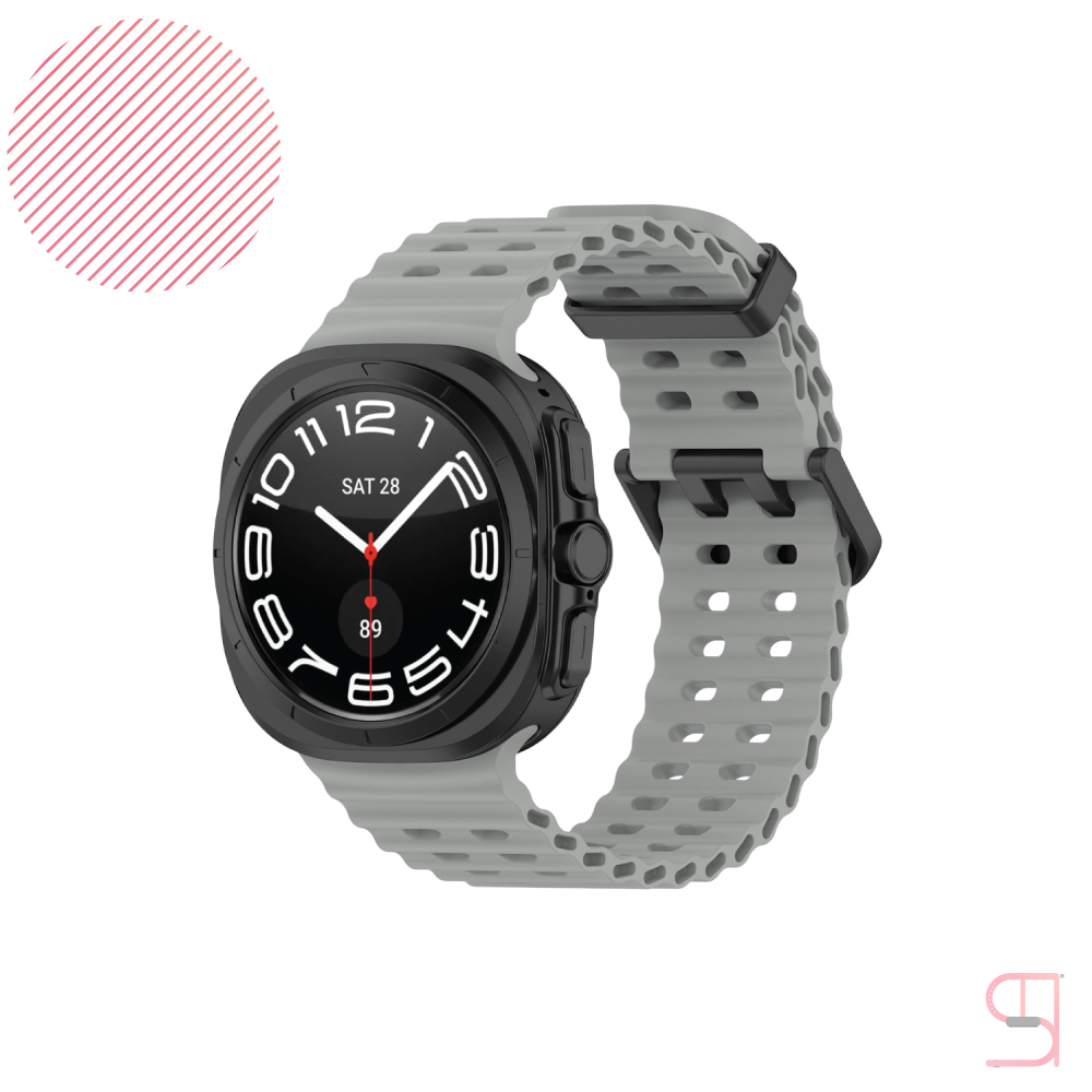 Take your smartwatch to the next level with the Galaxy Watch Ultra Ocean Silicone Strap, built for durability, comfort, and an adventurous lifestyle. Made from premium waterproof silicone, this strap is flexible, skin-friendly, and designed to withstand even the most active conditions – from swimming and workouts to everyday wear.